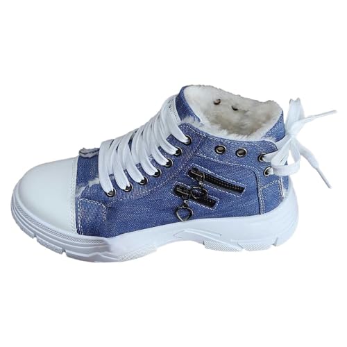 Bottines Femme en Jean Confort Chic Basket Montante Femme Plate Boots Fourrées Sport Décontracté Bottes Chaudes Chaussure Bottines Automne Hiver Bottine Botte Chic et Élégant Chaussures Confortable