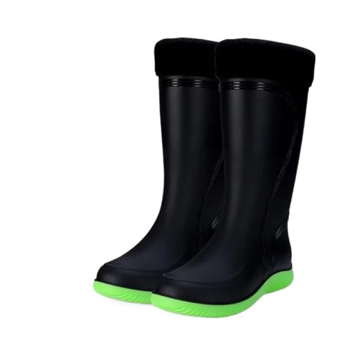 LXHZSY Bottes Caoutchouc Fourrées Bottes de pluie montantes for hommes, chaussures épaisses en caoutchouc jaune givré, for la cuisine, l'extérieur, l'eau et le travail(Green thermal sleeve,41)