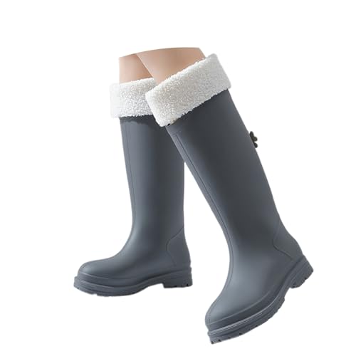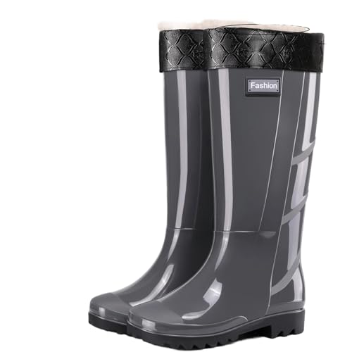 LXHZSY Bottes Caoutchouc Fourrées Bottes de pluie grande taille for femme, imperméables, antidérapantes, en PVC, mi-mollet, for l'extérieur, confortables toutes saisons(Grey,44)