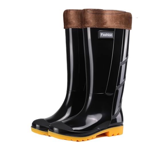 Bottes Caoutchouc Fourrées Bottes de pluie montantes for hommes, chaussures imperméables et antidérapantes, idéales for l'extérieur, le jardinage, travail, la mode style décontracté(Black plush,41)