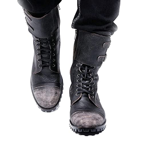Bottes d'équitation Steampunk rétro en Cuir PU avec 3 Boucles, Bottines de Mode d'extérieur pour Homme, Usage Quotidien, Noir, 45 EU