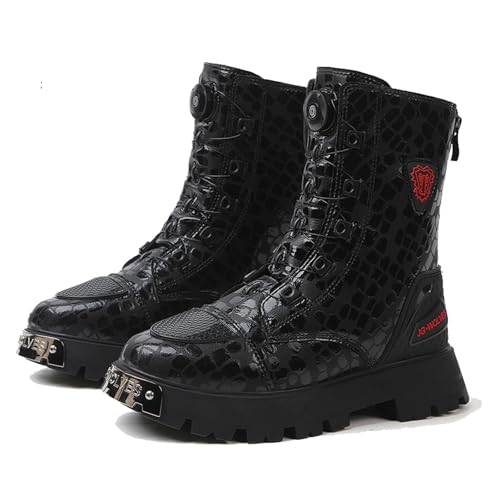 DJFOG Chaussures de Moto pour Homme et Femme, Bottes de Moto Motard en Cuir Respirant avec Maintien de la Cheville, Semelles antidérapantes hydrofuges,Noir,45