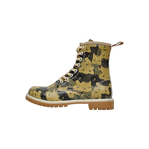DOGO Femme Cuir Vegan Beige Bottes Longues - Raccoon Motif-37