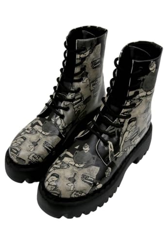 DOGO Femme Cuir Végétalien Noir Bottes longues à glissière - Edvard Munch The Scream Muse Motif-36