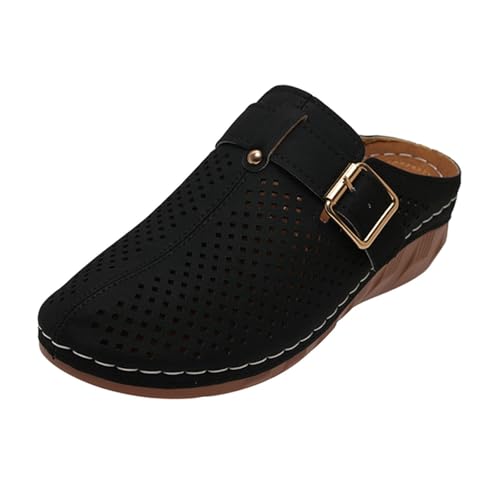Chaussures Femme Talon Confortable Chaussure Été 2026 Nouvelles Chaussures de Plage de Vêtements D'Extérieur Plats Sandales Romaines Creuses Noires Bottes Chaussure Orthopedique Femme (Black,38)