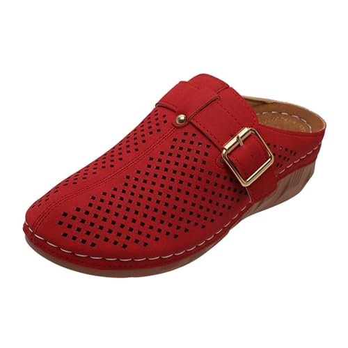 Nuoke sandale femme,chaussures femme ete,Chaussons plats surdimensionnés à talon compensé, style européen et américain, pour, nouveaux modèles ajourés. Bottes De Neige Imperméable Hiver (Red, 41)