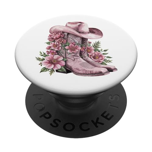 Aquarelle Cowgirl Floral Bottes Chapeau Western Bottes Boho Femmes PopSockets PopGrip Adhésif