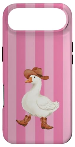 Cute Goose Preppy Chapeau et Bottes de Cowboy Western Rayures Roses Coque pour iPhone Air