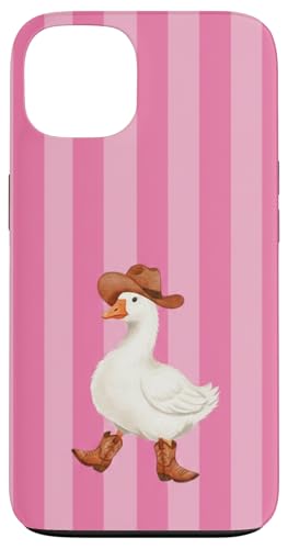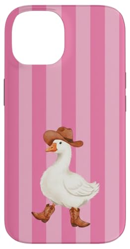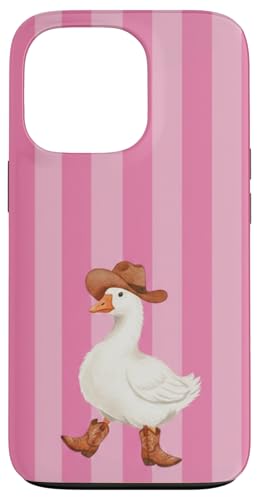Cute Goose Preppy Chapeau et Bottes de Cowboy Western Rayures Roses Coque pour iPhone 13 Pro