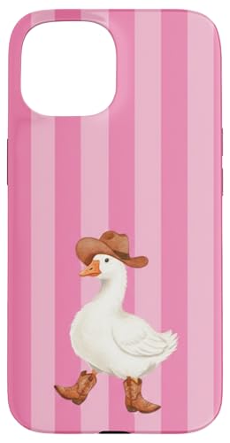 Cute Goose Preppy Chapeau et Bottes de Cowboy Western Rayures Roses Coque pour iPhone 15 Pro