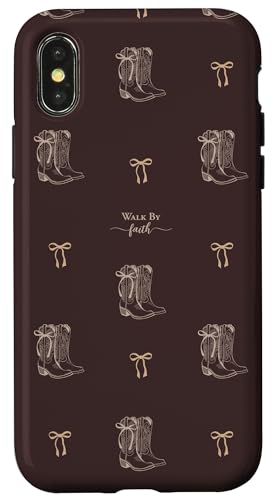 Walk by Faith Bottes Western chrétiennes de Cowgirl Coque pour iPhone X/XS