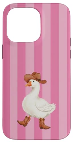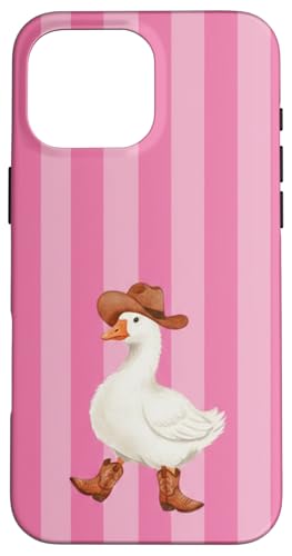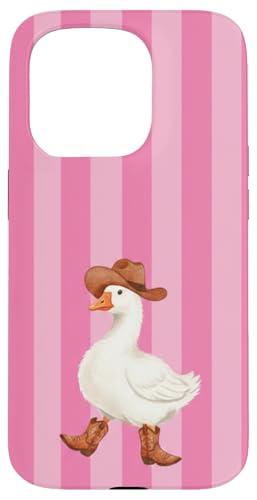 Cute Goose Preppy Chapeau et Bottes de Cowboy Western Rayures Roses Coque pour iPhone 16 Pro