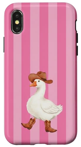 Cute Goose Preppy Chapeau et Bottes de Cowboy Western Rayures Roses Coque pour iPhone XS Max
