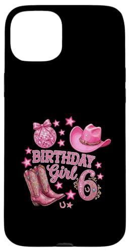 Bottes Western Disco Rose 6ème Anniversaire Cowgirl Coque pour iPhone 15 Plus