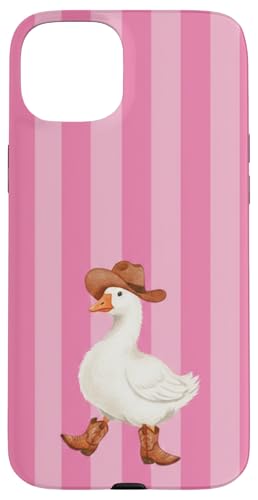 Cute Goose Preppy Chapeau et Bottes de Cowboy Western Rayures Roses Coque pour iPhone 15 Plus
