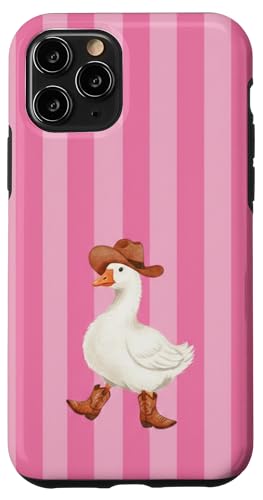 Cute Goose Preppy Chapeau et Bottes de Cowboy Western Rayures Roses Coque pour iPhone 11 Pro
