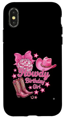 Bottes Western Pink Disco Howdy Cowgirl Birthday Squad Coque pour iPhone XS Max