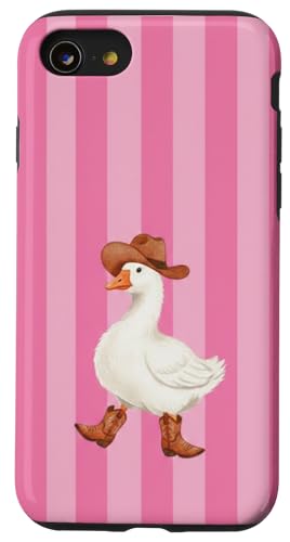 Cute Goose Preppy Chapeau et Bottes de Cowboy Western Rayures Roses Coque pour iPhone SE (2020) / 7/8