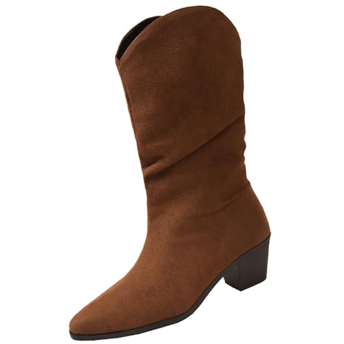 Générique Santiags Femme Western Bottine Gros Mollet Botte Talon Carré Bottes Plissé Boot Couleur Unie Chaussure Décontracté Large Chaussures Automne Hiver Bottine 35-42 Bottines Femme Bout Pointu