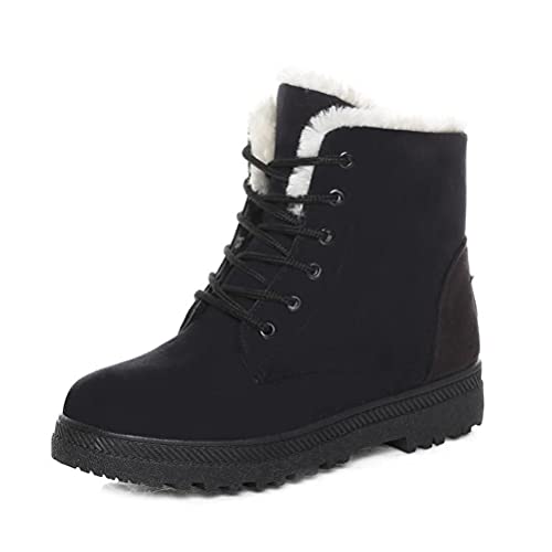 seiveini Bottes Femme Hiver Chaude Bottine Bottes de Neige Hiver Chaussures Chaudes Femmes Bottes Courtes Chaudes avec Lacets pour Hiver Loisirs Bottes Randonnée Boots A Noir 36 EU