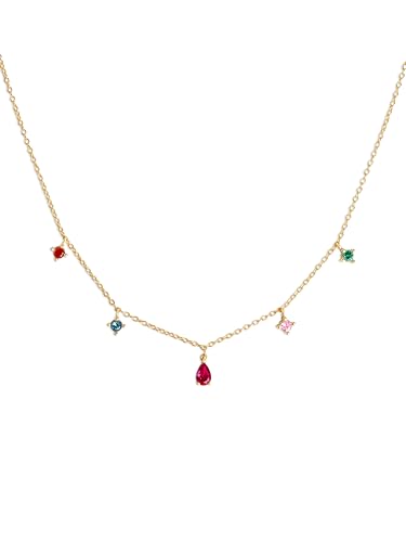 SINGULARU - Collier Cascade Colors Argent. Argent Sterling 925 avec Finition Plaqué Or 18Kt et Zirconiums Colorés. Chaîne avec Pendentifs. Taille Unique 35 cm + Extension. Bijoux pour Femme