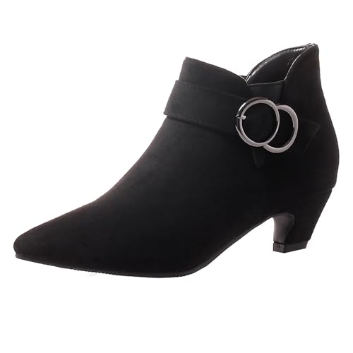 OALEEN Bottines Femme Talon Haut Aiguille Effet Daim Cuir Bout Pointu Chaussures Boots Hiver Noir 36