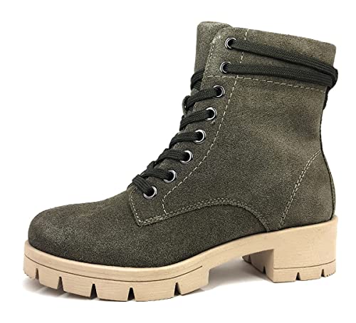 CuteHeels Bottines tendance à talon bloc avec fermeture éclair pour femme (kaki, 45 EU), kaki, 45 EU