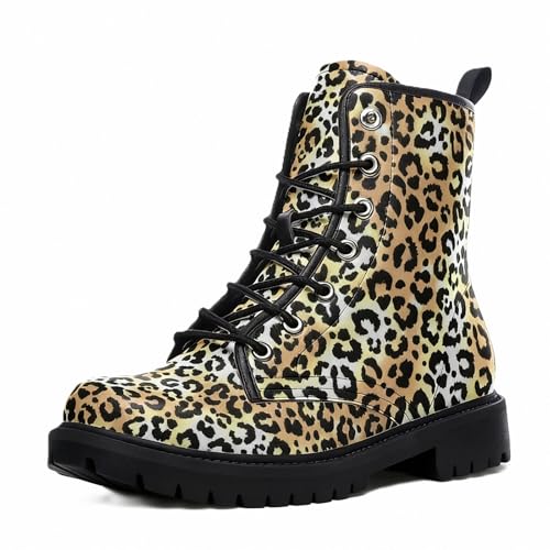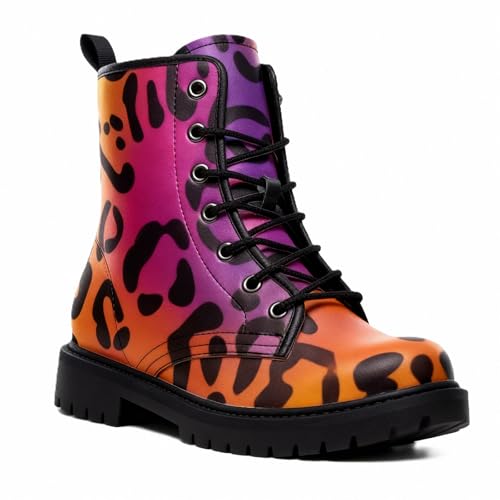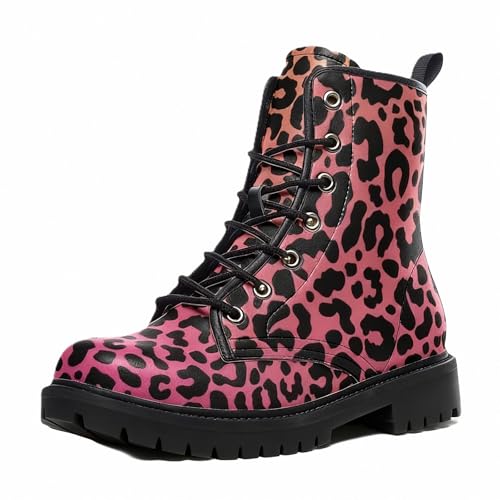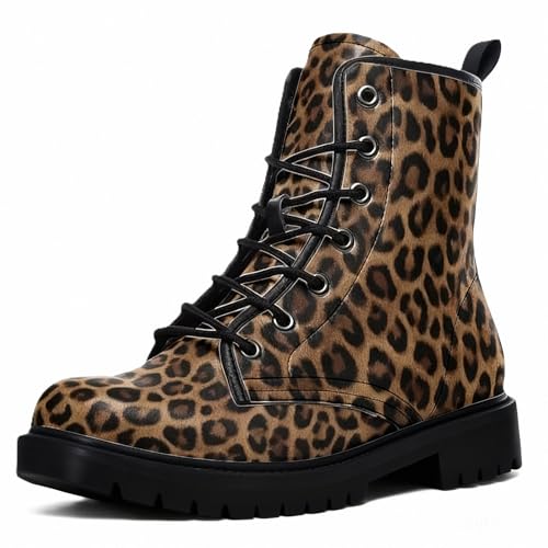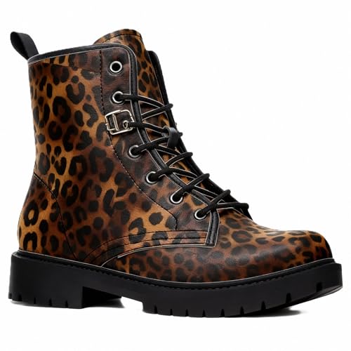 Maimeili Bottines Léopard Femme Décontractées Quotidiennes Élégantes Colorées à Plateforme Lacets Cuir Bottes Combat Fête Halloween Noël