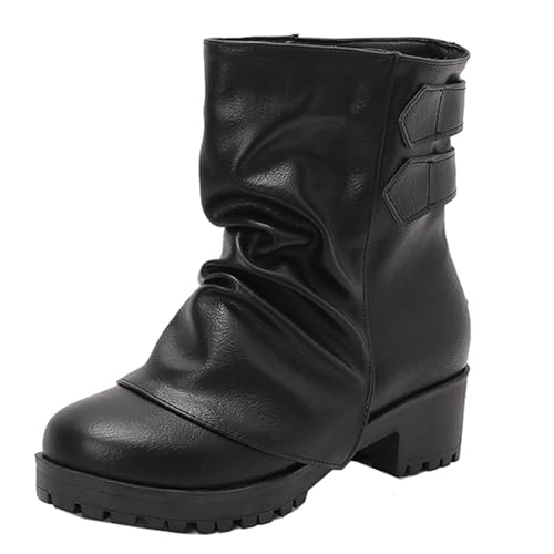 SJJH Bottines pour femme en cuir synthétique avec semelle plateforme et boucle en métal, talon de 4,5 cm pour plus de confort, Noir , 40 EU