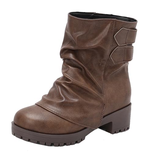 SJJH Bottines pour femme avec boucle de ceinture et talon bloc, talon de 4,5 cm et tige de 16 cm pour un confort hivernal, marron foncé, 40 EU