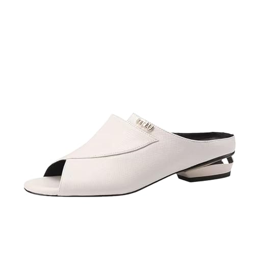 Uwdiohq Chaussures Pour Femmes, Pantoufles L'Extérieur, Sandales Tendance À Bout Ouvert, Grande Taille, Talon Moyen, Talons Épais Bottines Femmes (White, 35) Sandale Orthopedique Femme D'Été