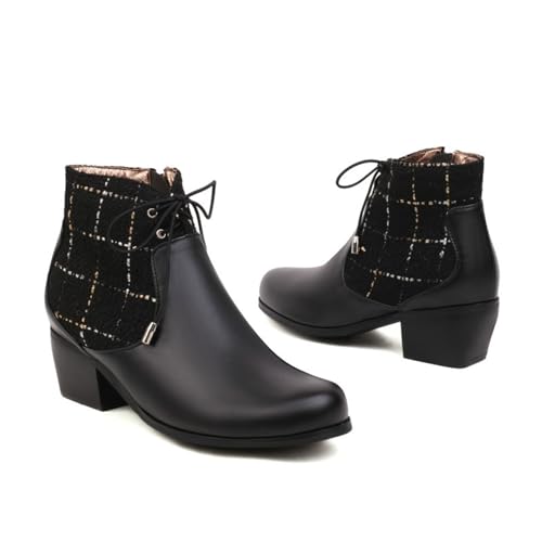 Bottines Printemps 2026 Bottes À Lacets Classiques for Femmes Avec Talons Blocs Bottines Chelsea En Cuir PU Avec Patchwork Talons Hauts Grande Taille 43 Chaussures Vintage À Cheville(Black,35 EU)