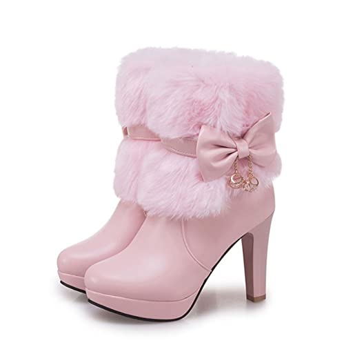 Hiver Femmes Bottes noël Bottines Talons Hauts Dames Chaussures Femme Chaud Bottes Courtes Bottes de Neige fête Mariage Chaussures Grande Taille 35-43,Rose,41 EU