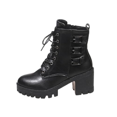 MEECHI Bottines Printemps 2026 Bottines Vintage en Cuir PU for Femmes Bottes Courtes Antidérapantes À Plateforme Bottes À Lacets Grande Taille 43 Chaussures À Cheville for L'extérieur(Black,35 EU)
