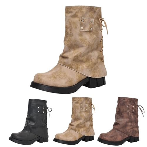 MEECHI Bottines Printemps 2026 Bottines Vintage en Cuir PU for Femmes Bottes Courtes Antidérapantes À Plateforme Bottes À Lacets Grande Taille 43 Chaussures À Cheville for L'extérieur(Beige,35 EU)