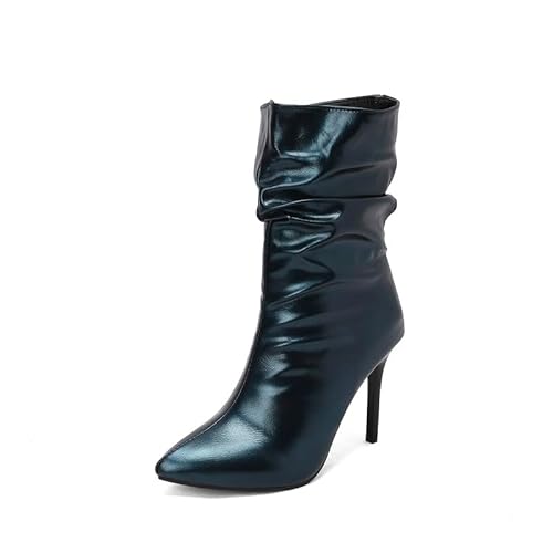 JIEEME Synthétique Bout pointu Bottines à enfiler, Talon Stiletto Talon Haut Fait à la Main Bottes mi-Tige pour Femmes Grande Taille 35-46 S691s, bleu, 45 EU