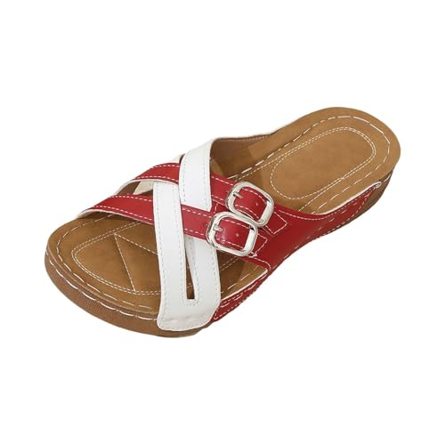 Uwdiohq Pantoufles D'Été À Fond Plat en pour Femmes, De Plage Bout Ouvert Bottines Femmes sans Talon Large (Red, 43) Claquette Femme Tong Chaussure Compensée Sandales Taille 35 Chaussures Ete