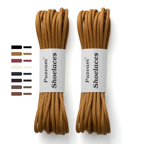 Puzeam 2 paires de Lacets Ronds Cirés de 3mm Fins pour Homme - Lacet en Cuir pour Chaussures de Ville, Chaussures Habillées et Bottines Tan 90
