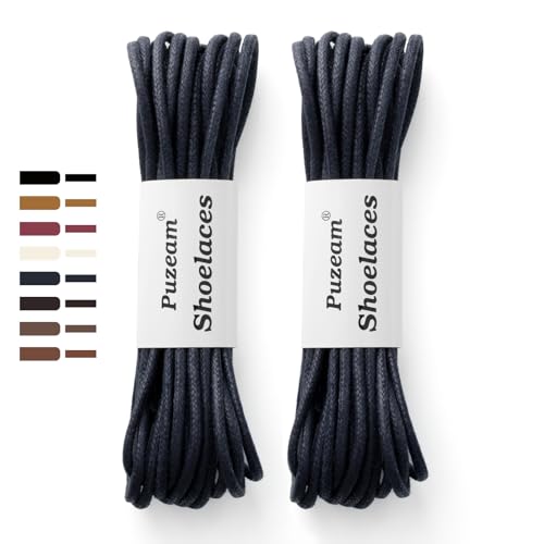 Puzeam 2 paires de Lacets Ronds Cirés de 3mm Fins pour Homme - Lacet en Cuir pour Chaussures de Ville, Chaussures Habillées et Bottines Bleu Marine 110