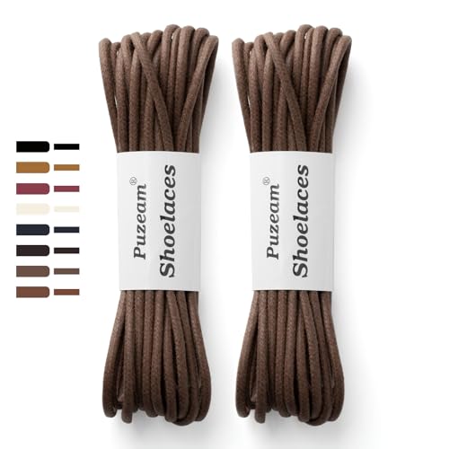 Puzeam 2 paires de Lacets Ronds Cirés de 3mm Fins pour Homme - Lacet en Cuir pour Chaussures de Ville, Chaussures Habillées et Bottines Brun Foncé 70