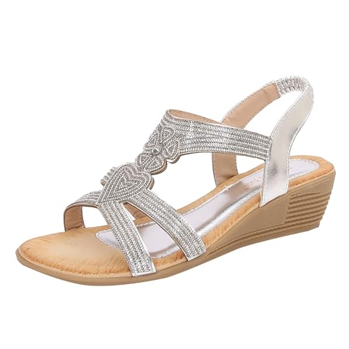 Claquette Femme Mode Sandales Confort Sandales Bout Ouvert Taille 8 compensées à plateforme, compensées pour femmes, chaussures habillées confortables Bottines Plates Noires Pour Femmes (Silver, 42)