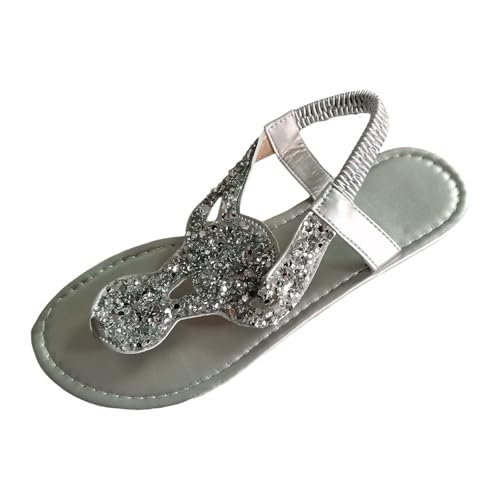 Sandales Femme ConfortablesChaussures Bottines Plates Sandales pour femmes avec soutien de la voûte plantaire, à bride arrière, chaussures de plage d'été, bride à la cheville, plates(Silver, 39)