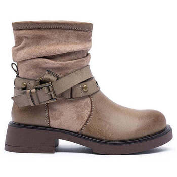 Bottines Vera Collection Bottines femmes plates plissée à brides cloutées, Taupe
