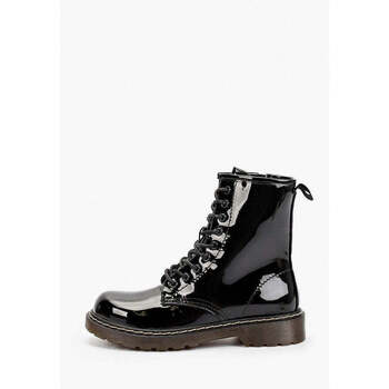 T-shirt Vera Collection Bottines femmes plates à lacets, Noir Vernis