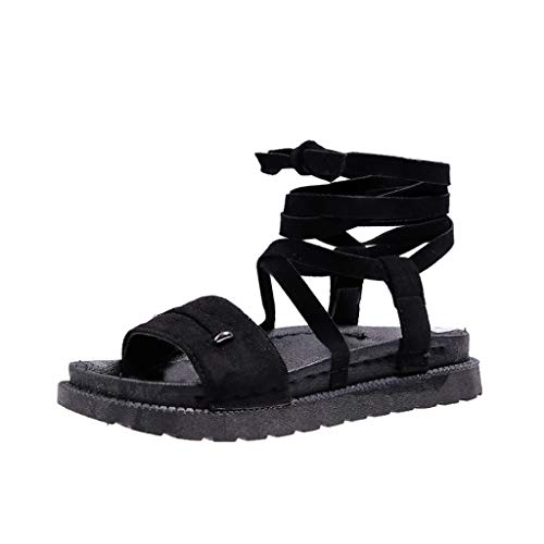 Uwdiohq Sandales À Lacets En Toile Bohème Pour Femmes Chaussures Compensées De Ethnique Semelles Épaisses Bottines Rouges Avec Talon Sexy (Black, 41) Orthopédiques Femme Sandale Confort Cuir