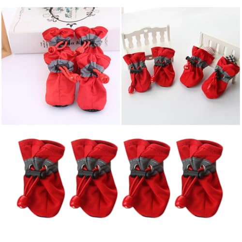 OUNONA Lot de 4 Bottines Imperméables Rouges pour Chiens Semelle Souple en Cuir et Plastique, Protection des Pattes pour Activités en Extérieur