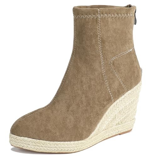 LarDorLin Femme Pointu Espadrille Compensées Bottes de Cheville Suède Hiver Confort Chelsea Bureau Warm Bottines Mode Kaki Taille 35 EU