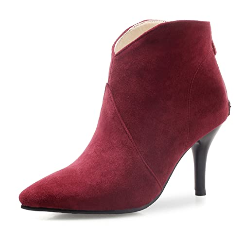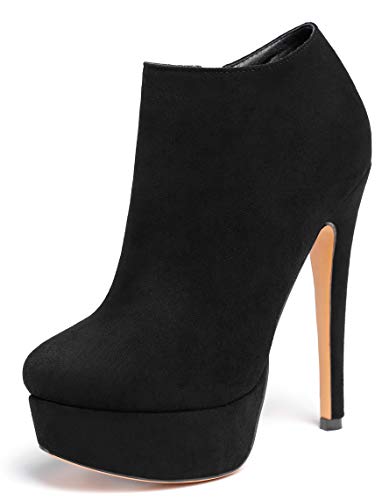 OALEEN Bottines Femme Talon Haut Aiguille Effet Daim Cuir Bout Pointu Chaussures Boots Hiver Noir 34