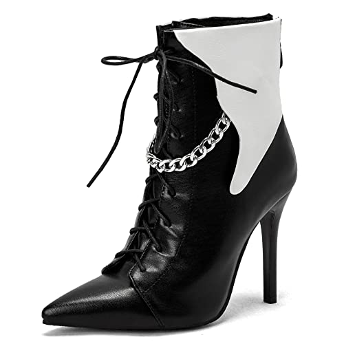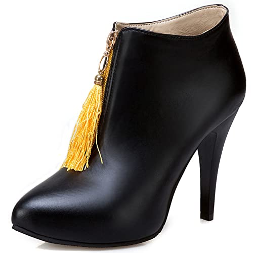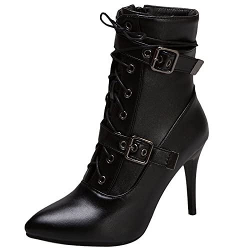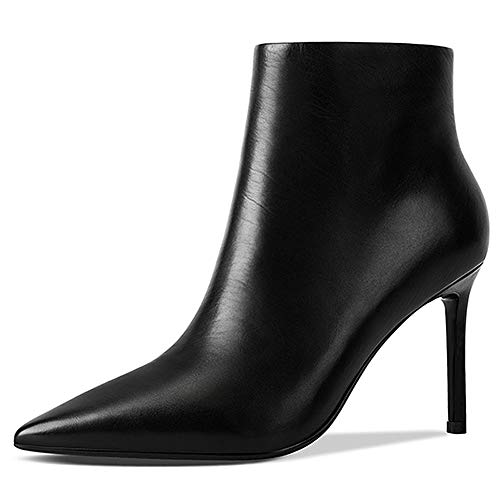 OALEEN Bottines Femme Talon Haut Aiguille Effet Daim Cuir Bout Pointu Chaussures Boots Hiver Noir 37