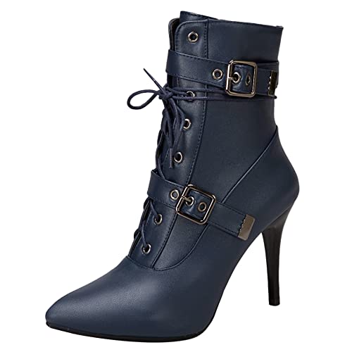 OALEEN Bottines Femme Talon Haut Aiguille Effet Daim Cuir Bout Pointu Chaussures Boots Hiver Noir 39